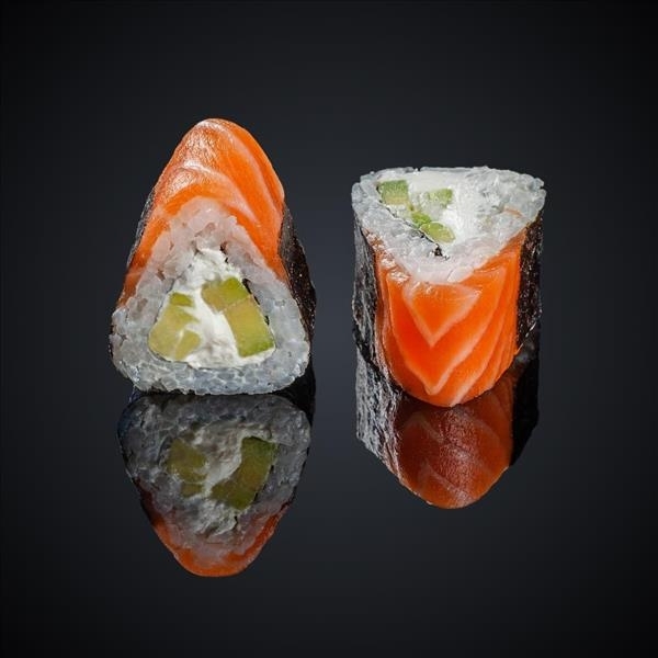 Состав: лосось, авокадо, сыр “Cremette”, нори, рис .
