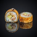 Состав: лосось, огурец, соус “Спайси”, икра “Масаго”, нори, рис.