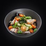 Лосось, авокадо, сыр “Cremette”, сыр “Моцарелла”, соус “Спайси”, соус “Унаги”, кунжут, нори, рис.