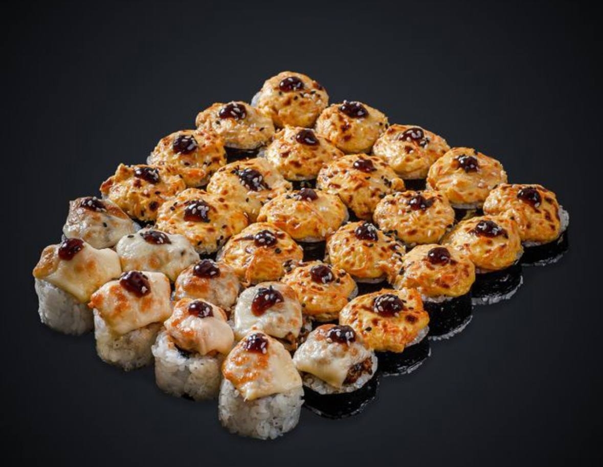 Запеченный от Катаны — 1/2, Запеченный с лососем — 1/2, Запеченный с мидиями и снежным крабом — 1шт, Запеченный с копченой курицей