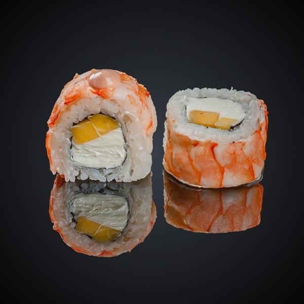 Состав: креветка, манго, сыр “Cremette”, нори, рис.